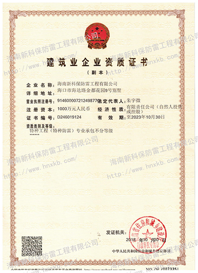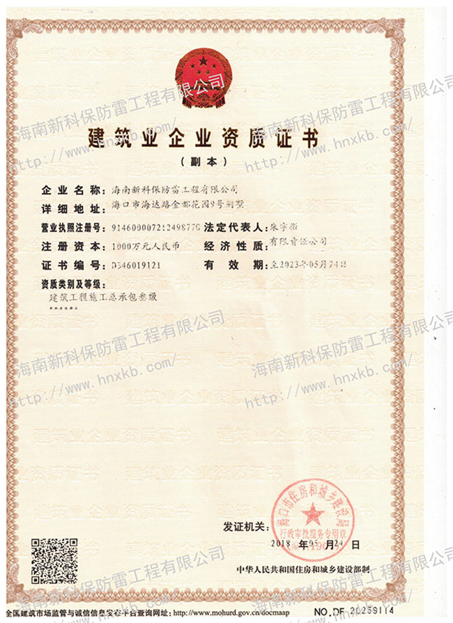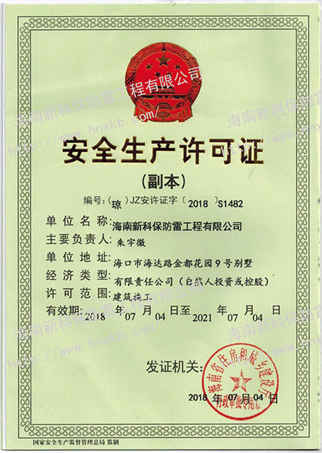 海南新科保防雷工程有限公司是一家集防雷技術(shù)研究、防雷檢測、防雷工程設(shè)計(jì)施工、安防監(jiān)控工程設(shè)計(jì)施工、建筑智能化施工、建筑水電施工于一體的高科技公司。在相關(guān)主管部門監(jiān)管下,致力于為客戶提供專業(yè)的安全防護(hù)、建筑智能化、水電技術(shù)等優(yōu)質(zhì)產(chǎn)品和工程服務(wù)。